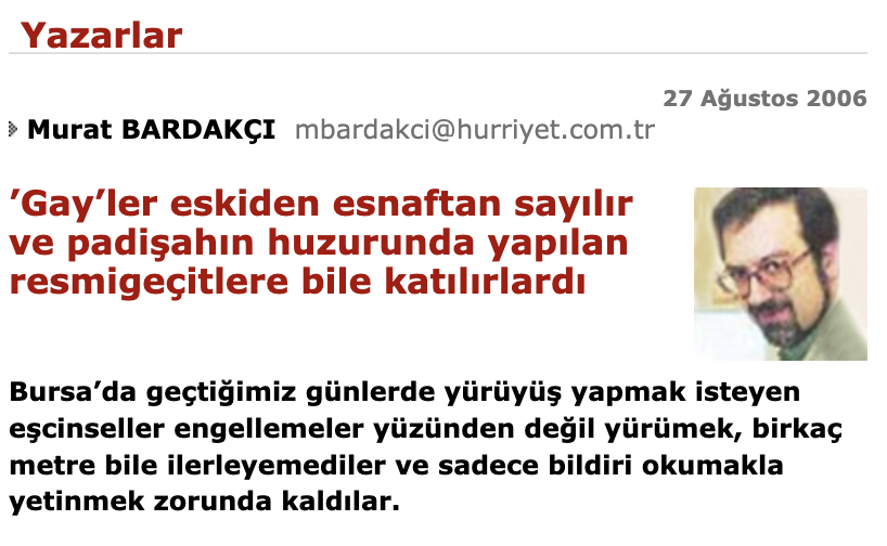 Bardakçı 2006 tarihli köşe yazısında hiz oğlanlarından bahsetti, Osmanlı edebiyatından örnekler verdi.